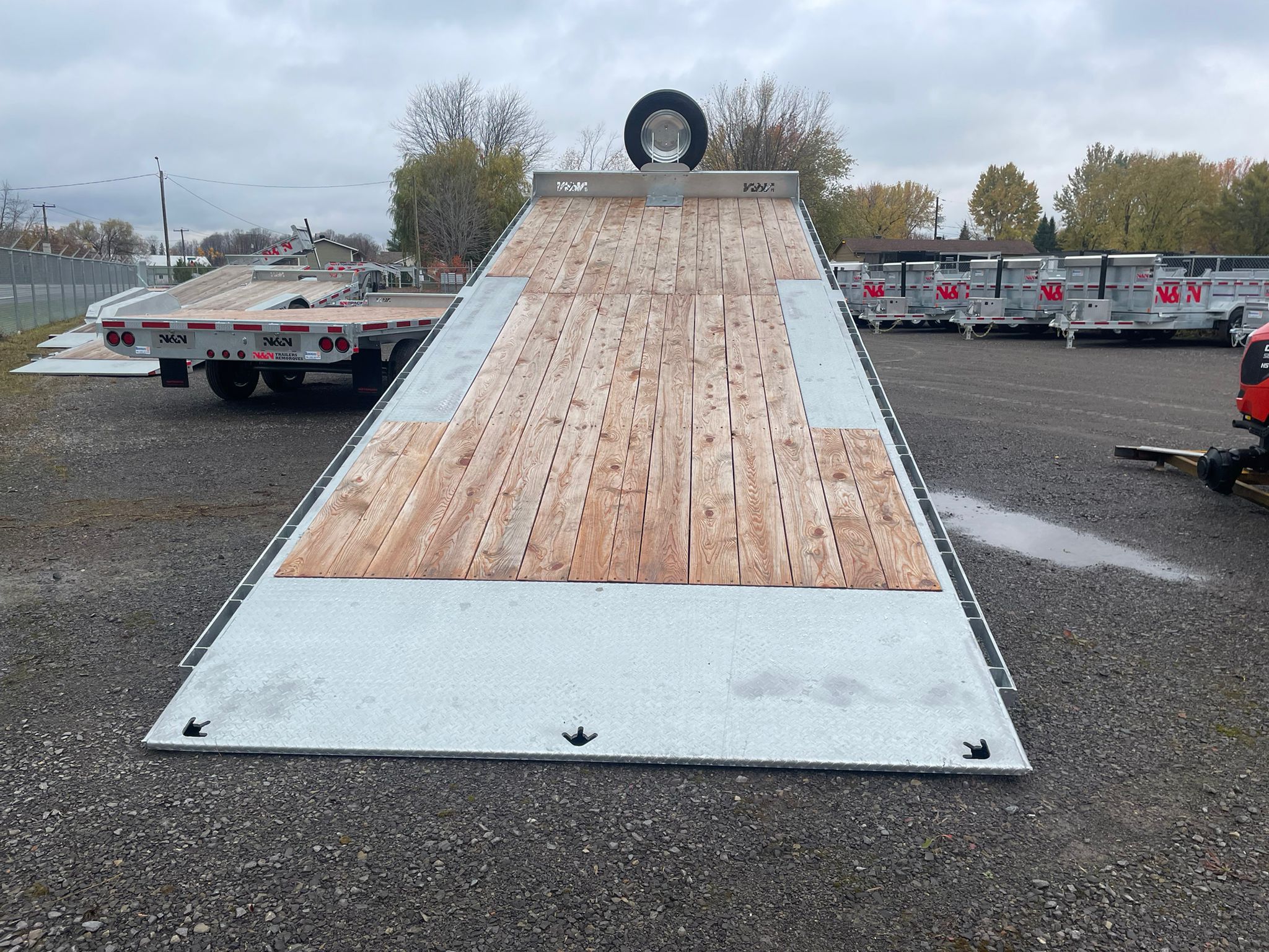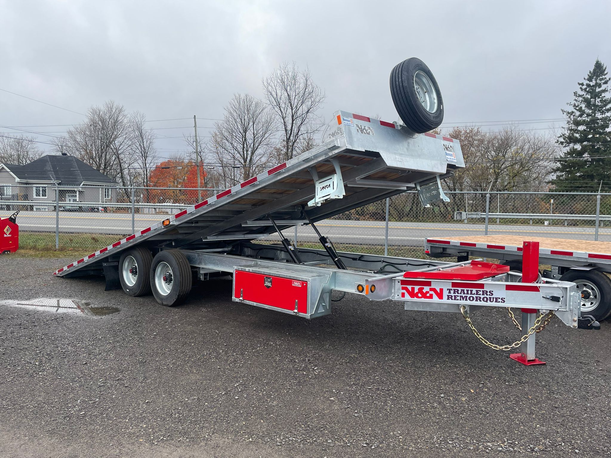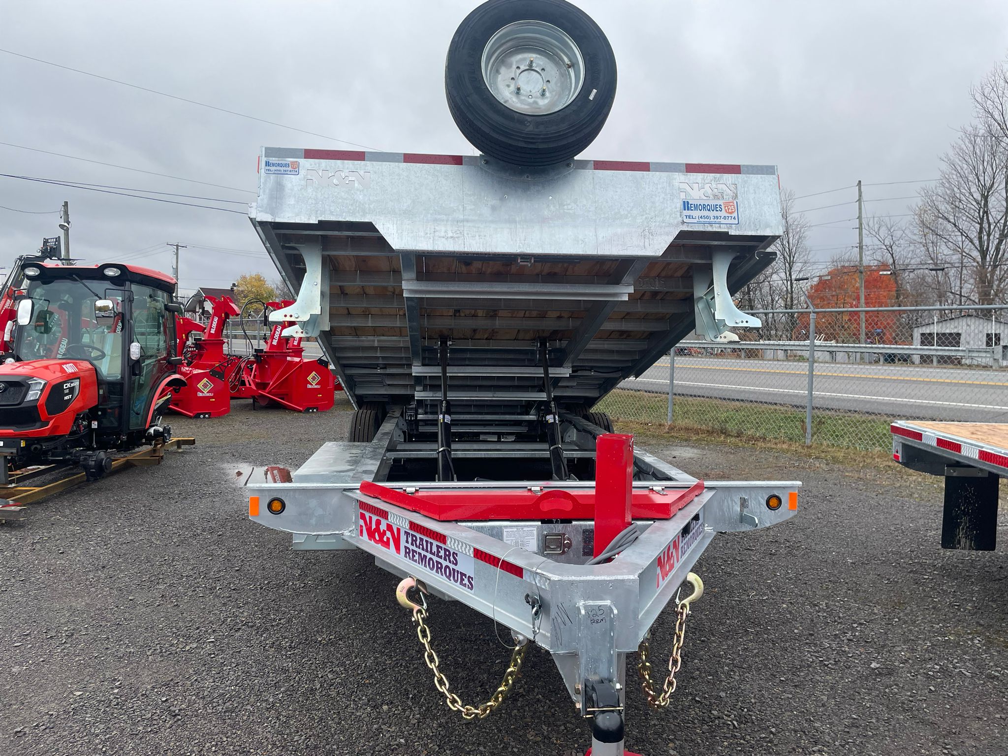 Support a roue de secours N&N inclus, pneu 235/75R17.5 18 plis sur roue simple galvanisée. Vérin (jack) hydraulique 12K sans valve 20''course rouge